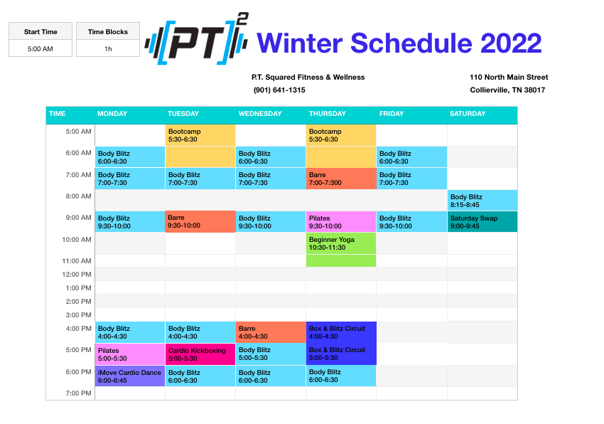 ​​​Saturday Swap: Saturday Classes switch every week. It can be a Cardio Kickboxing, iMove, Kettlebell Class, Flex and Roll Recovery, or Box & Blitz.